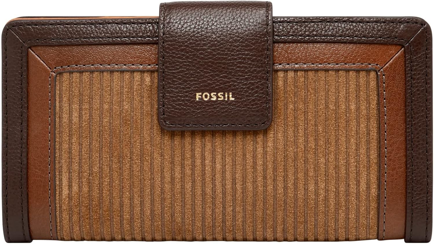 Leather Imported Fossil has always been inspired by American creativity and ingenuity. Since 1984, we’ve strived to bring new life into the industry by making quality, fashionable watches and accessories that were both fun and accessible Logan was designed to include the best features of all our wallets. With double stitch details and a simple foil logo, it's a classic but casual wallet at a great price. The tab wallet has all the storage of a clutch with a slim, minimal profile Genuine Suede Leather RFID Tab Clutch Wallet with Corduroy Textured Detail; Snap Closure; 100% REPREVE Recycled Polyester Lining; imported Exterior Detail: 1 Back Slide Pocket, 1 Back Zipper Pocket; Interior Detail: 12 Credit Card Slots, 1 ID Window, 4 Bill Compartments Measurements: 6.75"L x 0.75"W x 3.5"H; RFID protection: a special lining helps protect the Radio Frequency Identification (RFID) chips in your credit and debit cards from unwarranted scanning
