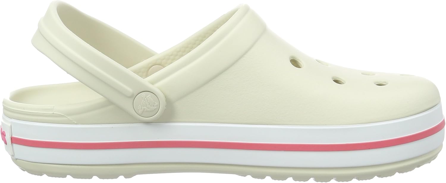 100% Synthetic Ethylene Vinyl Acetate sole Heel measures approximately 0.82" SPORTY, STYLISH AND COMFORTABLE: The Crocs Crocband Clogs feature reliable cushioned comfort, a sporty design, and a variety of energy-boosting colors and graphic designs, making them the Crocs women and men need. Show your stripes LIGHTWEIGHT: These Crocs for men and women are incredibly lightweight, water-friendly and buoyant. The Croslite foam offers an Iconic Crocs Comfort that is perfect for relaxing at home or hanging out at a sports game WHAT SIZE SHOULD I BUY?: These Crocs for women and men offer a relaxed fit and we recommend ordering a size up to the next largest whole size VENTILATION AND DURABILITY: These innovative Crocs clogs for women and men offer a durable build with advanced ventilation and breathability. The design helps drain water and debris when kickin' around in wet conditions MAKE THEM YOUR OWN: These women's and men's Crocs offer a roomy and generous fit that is sure to match your foot. The Crocs clogs can be customized with Jibbitz charms to reflect your own personal flair