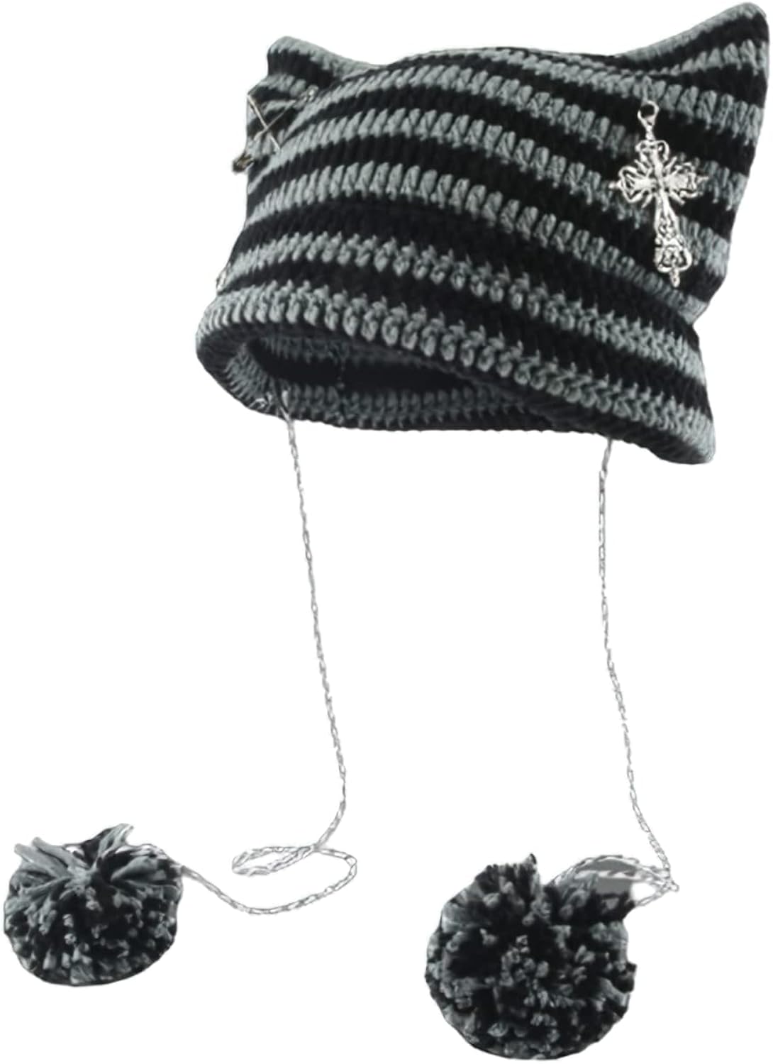 Crochet Hats for Women Vintage Beanies Women Fox Hat Grunge Goth Beanies Hat Y2K Accessories Slouchy Beanies for Women