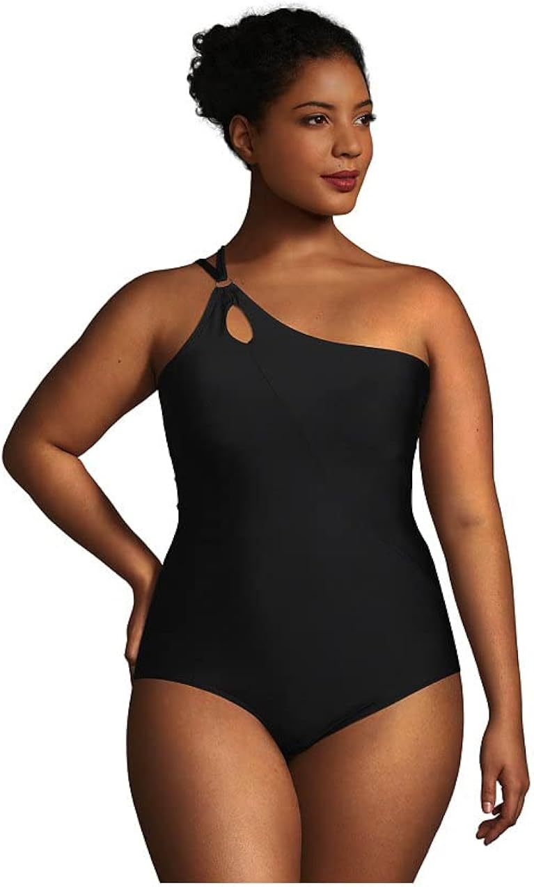 Spandex-blendNylon-blendLycraJersey LYCRA Xtra Life spandex, lasts up to 10 times longer than suits made with ordinary spandex Resists breakdown from chlorine, sunscreen and sweat Light control lining gives the suit a smooth foundation Adjustable strap for a just-right fit Modest neckline provides extra coverage and sun protection