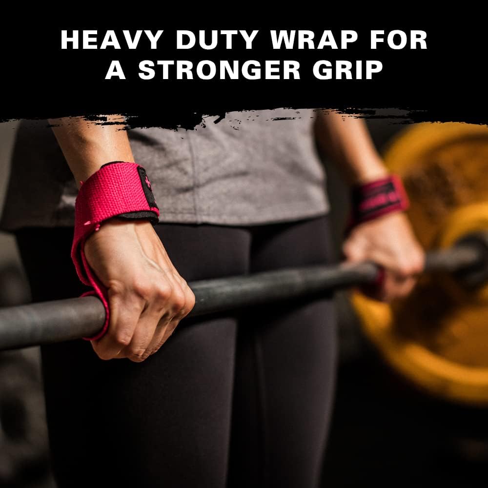 Pair of padded cotton lifting straps for weightlifting, bodybuilding, powerlifting, and strength training NeoTek pads cushion wrists for heavy lifts, taking pressure of the hands and grip during deadlifts, rows, and snatches Extended length (21.5 inches) provides a stronger wrap on the bar, and the 1.5-inch width increases contact on the grip surface resulting in less grip fatigue Use on barbells, dumbbells, bumper plates, and kettlebells to maximize gains in the gym with improved grip strength Heavy duty stitching increases durability, and merrowed end tabs prevent fraying