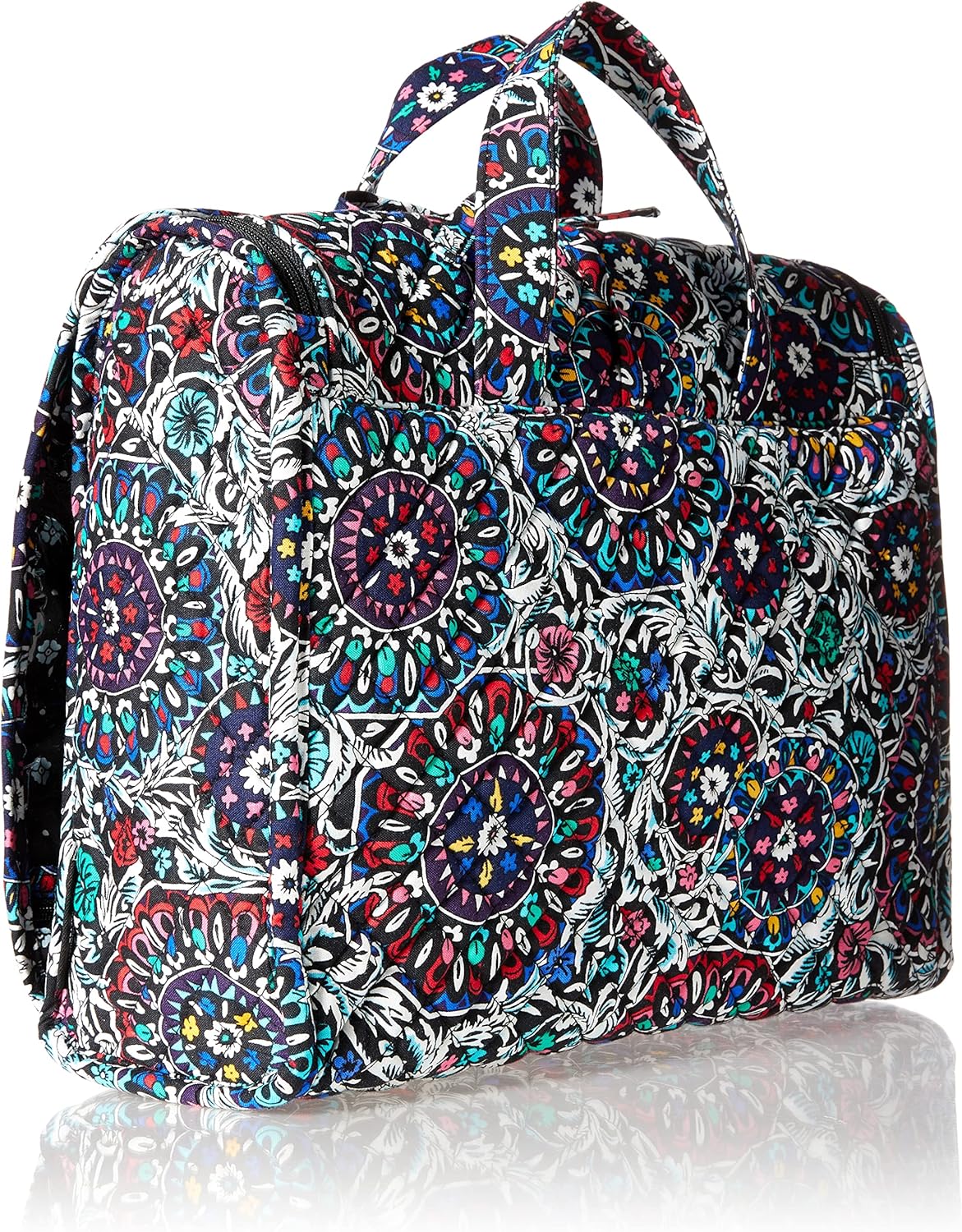 100% Cotton Imported MACHINE WASHABLE RECYCLED COTTON – The cotton fabric that you’re familiar with has been reimagined; this sustainable fabric is made from recycled cotton fibers and has all of the comfort, softness, and vibrancy that you know and love. TRAVEL READY -- Complete with carry-handles, easy-tie closure, & tuck away hanger for use at home or when you are on-the-go featuring taffeta-lined plastic pockets for your jewelry, makeup, hair accessories & some toiletries HANG IT UP -- The built-in hook allows you keep your jewelry & beauty products neat, organized, & on display - When closed, the hook simply tucks away for easy packing - also perfect to use as a face mask organizer or face mask storage case keeping your clean masks separate from your dirty ones CHIC & ORGANIZED -- This organizer features 3 zip pockets, 3 slip pockets, & 7 elastic loops for cosmetics, brushes, & small accessories - plus easy to clean lining to take care of pesky cosmetic spills STYLISH & SIZED RIGHT -- The Grand Travel Organizer measures 33 inches high, 12 inches wide, & 4 inches deep with a 5 inch handle drop & a hook for hanging
