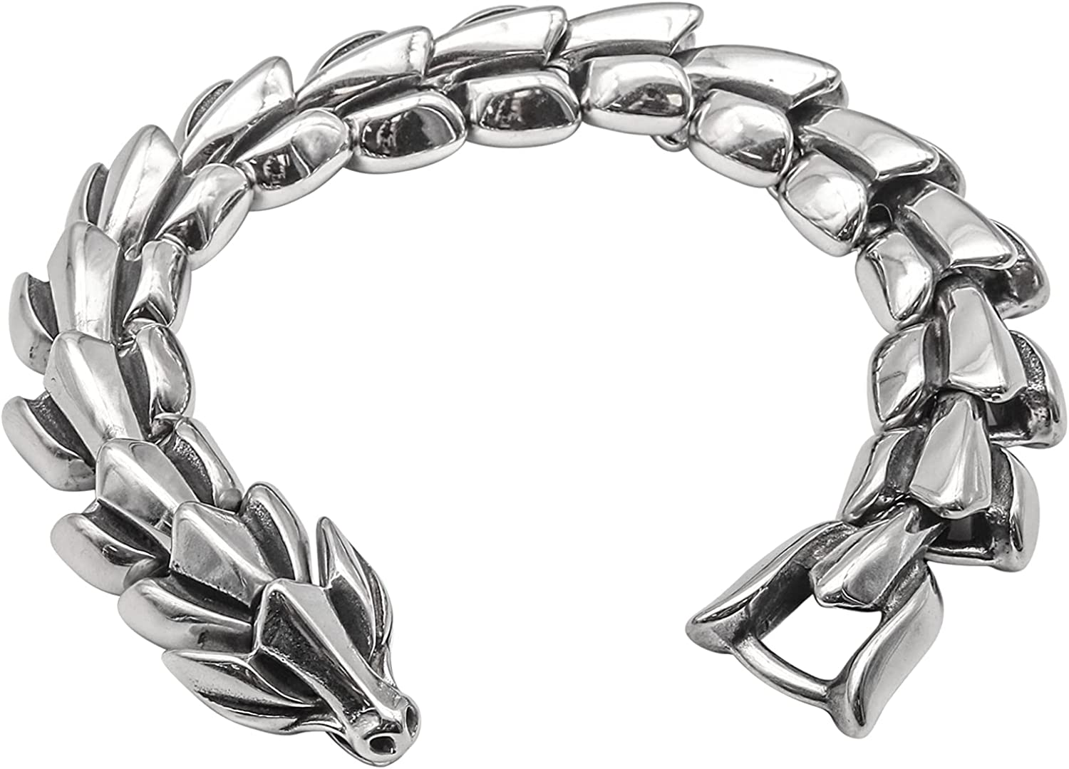 Ouroboros, Jormungandr Vikings Bracelet, Dragon Chain Vikings, Gothic, Motorcyclist, Stainless Steel Heavy Duty Bracelet for Men