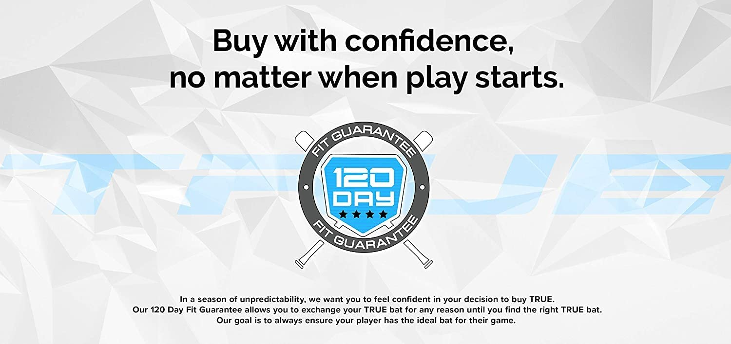 120-DAY FIT GUARANTEE: True Temper believes that swinging the right size bat will result in better performance for the player. For the first 120 days, if a player outgrows their bat, or simply is not happy with his current fit, they are able to exchange it for another True Temper Baseball bat size at NO EXTRA CHARGE! *Contact True Temper Baseball for more details